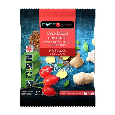 Cukierki landrynki dzika róża imbir propolis bez cukru 50 g PURE&GOOD