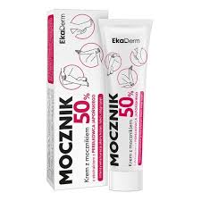 EkaDerm Mocznik 50%, krem z mocznikiem – przeznaczony do zrogowaciałej, suchej skóry pięt, łokci, kolan. Działa złuszczająco, pomaga przy przesuszeniu i pękaniu skóry, przywraca komfort.